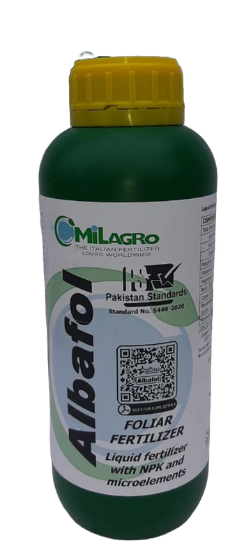 Albafol® is a complete NPK liquid foliar fertilizer enriched with amino acid & high microelements content created for foliar applications. It is suitable for all kinds of crops in the phase of active growth and for the overcoming of critical periods of stress & critical growing stages. Albafol® stimulate vigorous development of buds & growth of the vegetative tissues, induces a greater flowering, increases the pollination and fruit set of fruits,and improves the quantity and quality of yield.